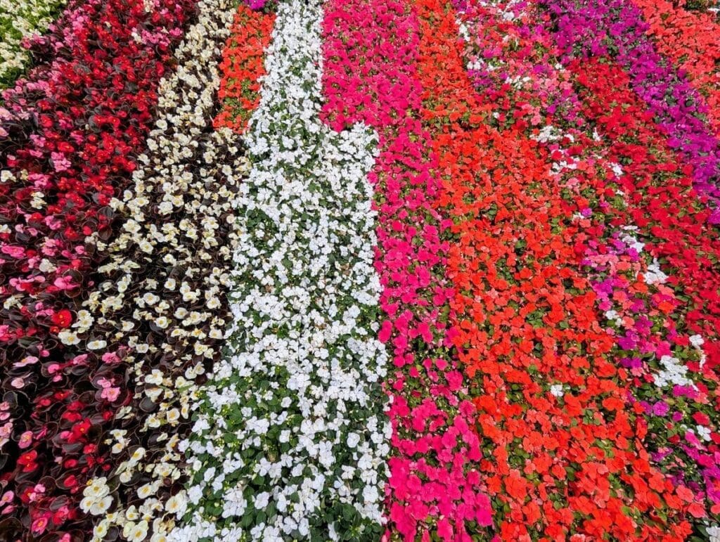 Mass plantings of warm-season annuals like impatiens and begonias deliver saturated color from mid-April through first frost — ideal for high-traffic beds in Tulsa landscapes where seasonal impact matters more than low maintenance.
