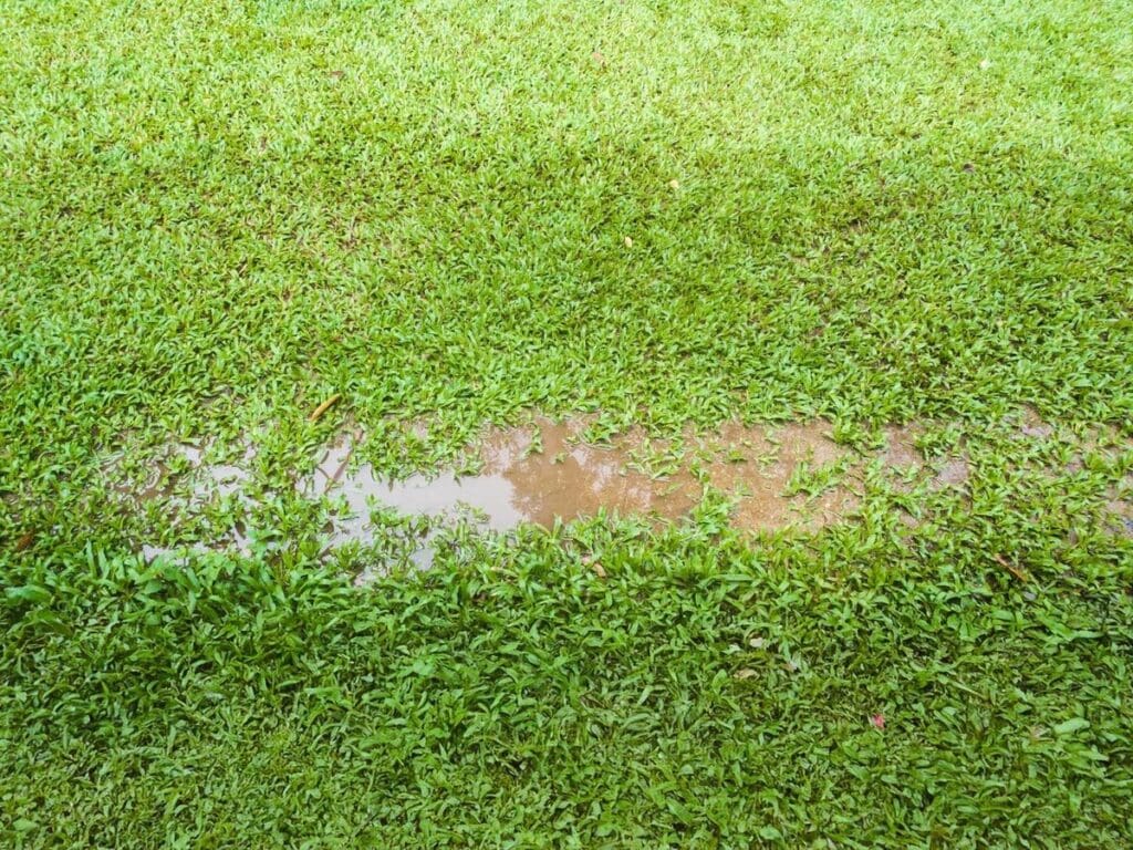 Severe pooling in a lawn — when standing water persists for more than 24 to 48 hours after rain, it signals a drainage problem that goes beyond normal soil saturation and needs to be addressed.