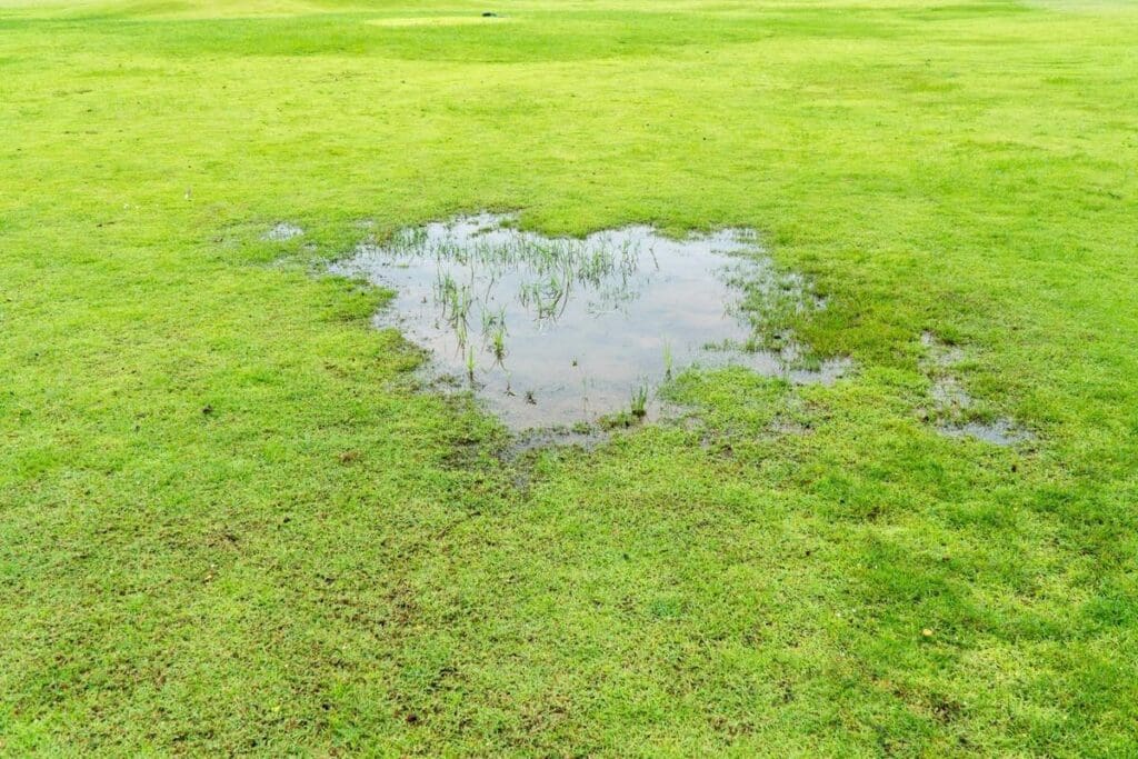 If water pools immediately during rain and disappears within a few hours, the issue is likely a low spot combined with slow soil infiltration. The area is collecting water faster than it can drain, but drainage is still occurring. This is the most manageable scenario and is often correctable with topdressing or aeration.