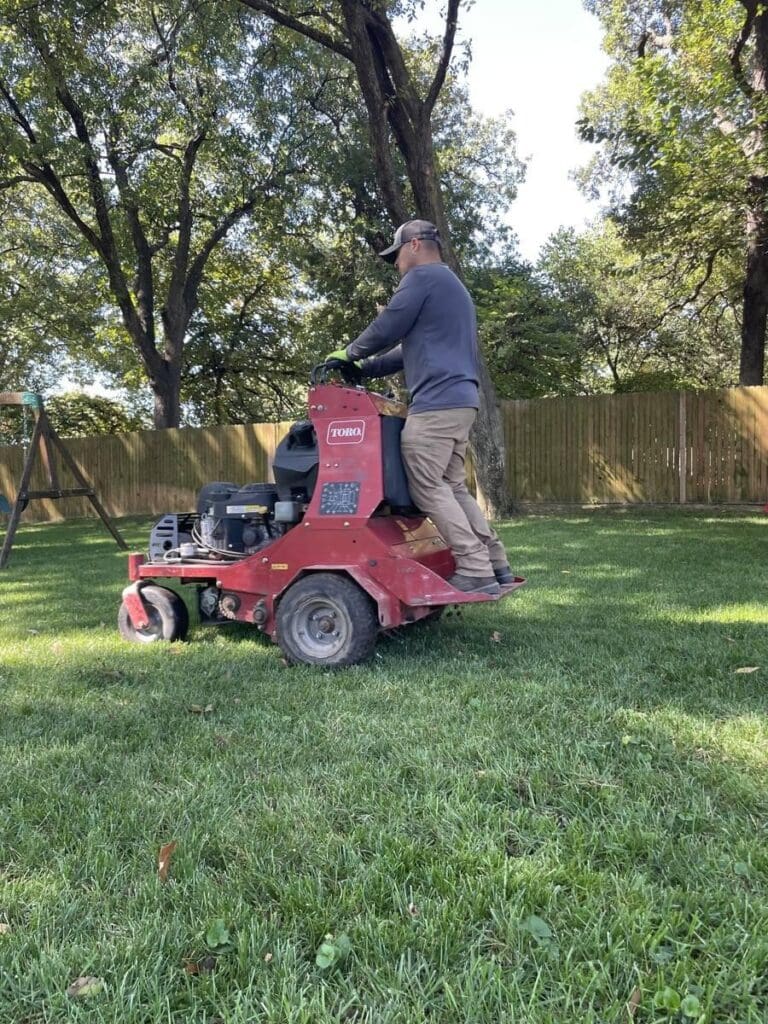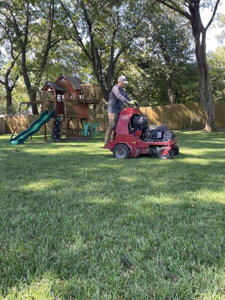 We invest in proper commercial aeration equipment — stand-on aerators that penetrate deeper and pull more cores than typical rental machines — because the quality of the aeration directly affects the quality of the result. On Tulsa’s dense clay, equipment that only penetrates one to two inches provides a fraction of the benefit of equipment that reaches three inches or more.